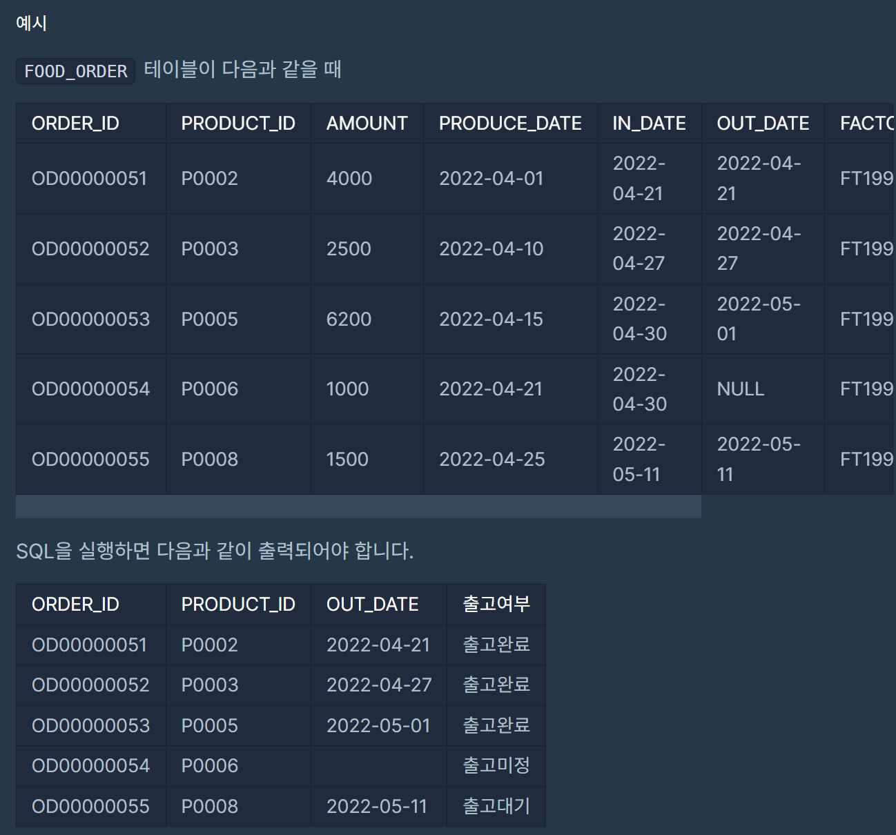 WHEN OUT_DATE <= TO_DATE('2022-05-01', 'YYYY-MM-DD') THEN '출고완료'